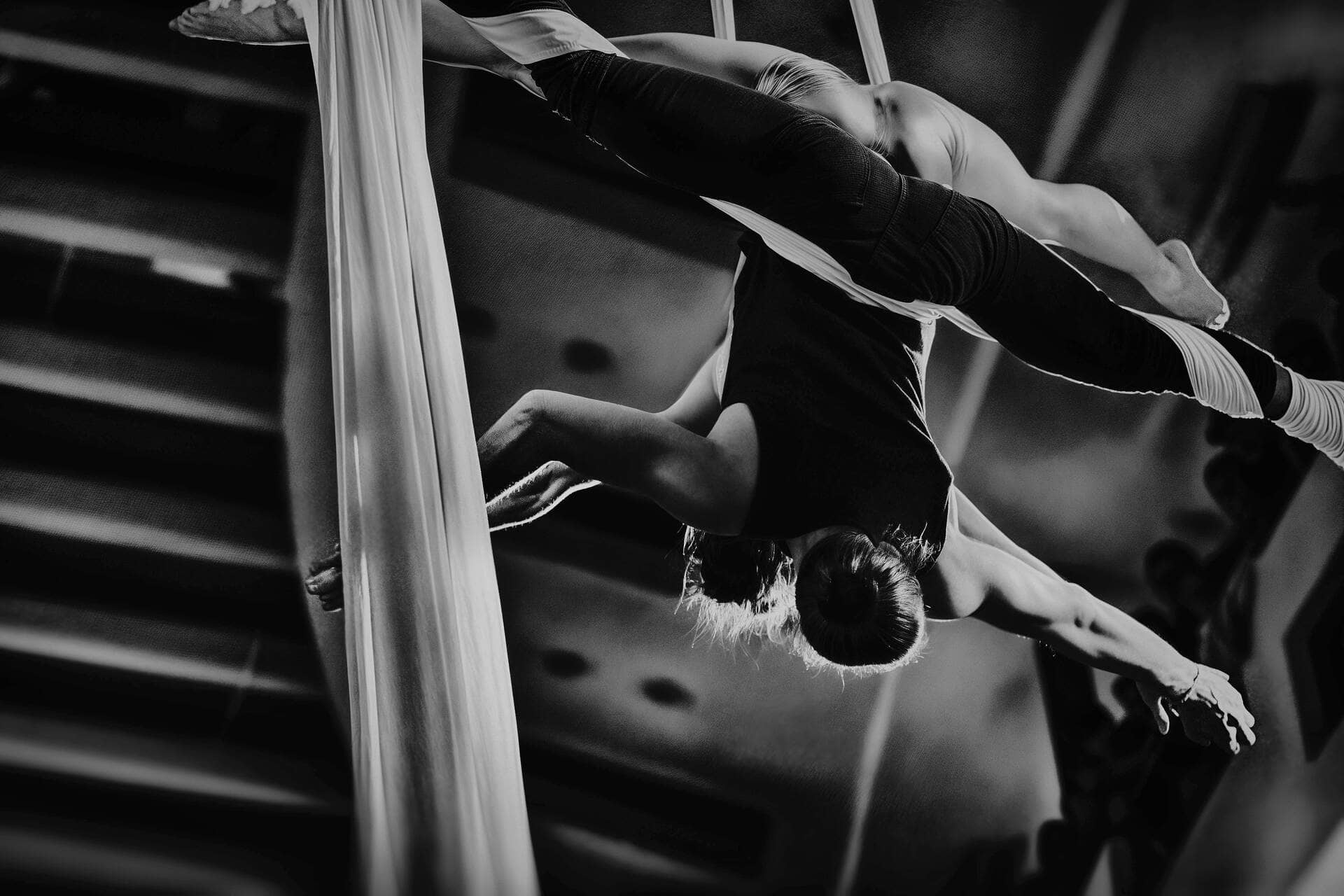 Pokud máte více prostoru, dvě akrobatky, každá na své šále, jsou ideální řešení. Vystoupení je jakýmsi dialogem a proto se může hodit i tématicky.